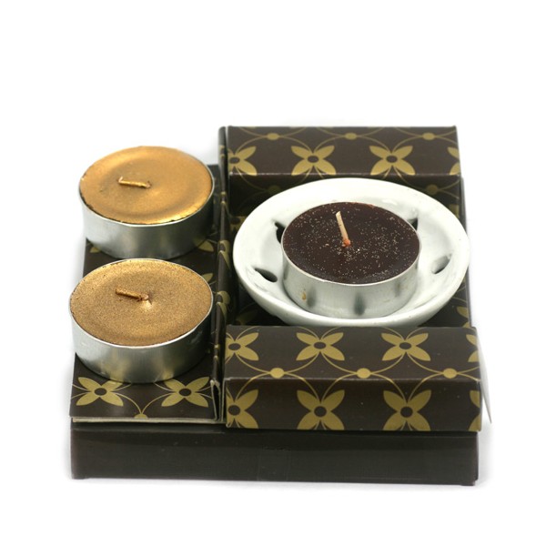 커피향 대형티라이트 3개와 고급도자기 촛대1개로 구성되어 있습니다.